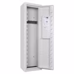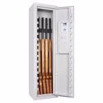 SP4 vapenskåp: Ett säkerhetsskåp med plats för 5 gevär. Enligt vapenlagen ska säkerhetsskåp som understiger 150 kg förankras, skåpet är lätt att förankra tack vare fyra förankringshål i botten och i ryggen. Vapenskåpet är testat och certifierat enligt SSF3492 och godkänt för 20 poäng, vilket innebär att du i praktiken får förvara 20 stycken gevär alternativt 10 stycken pistoler eller 5 stycken helautomatiska vapen inuti skåpet.